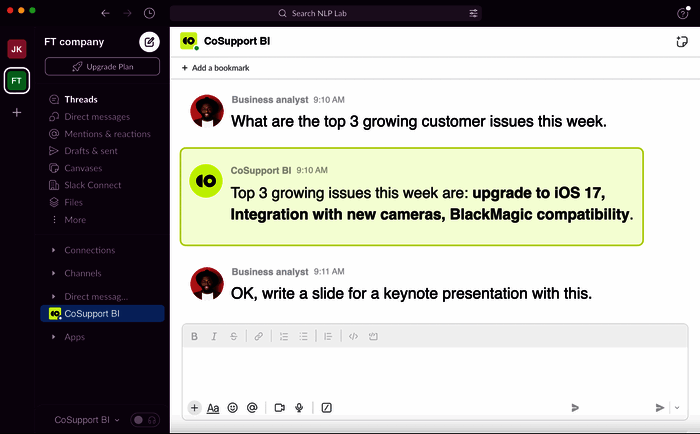 CoSupport AI enhances customer support and business intelligence by utilizing Big Data Analytics and Text Analysis to transform complex data into actionable insights. This enables companies to improve service efficiency and drive growth effectively. Its patented messaging features ensure secure and precise communication, making it an invaluable resource for businesses seeking to optimize their operations and customer interactions.