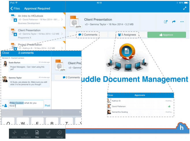 Huddle ECM is an enterprise content collaboration tool that streamlines file management and team communication, employing document management and workflow management features to enhance organizational efficiency. By enabling seamless archiving and compliance management, it helps companies effectively organize and distribute unstructured content, such as documents and emails. This integration fosters improved collaboration and productivity for teams navigating complex projects.