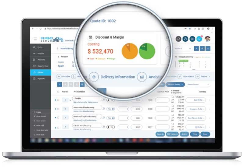 Seamless CPQ solution with advanced pricing analytics and order management for rapid Lead to Cash automation.