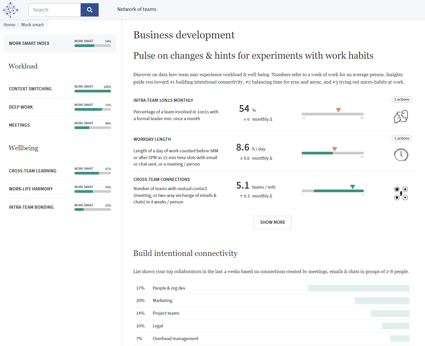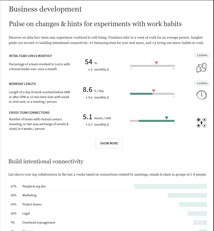 Network Perspective is an analytical tool that enhances team collaboration by utilizing activity tracking and data visualization, enabling leaders to identify collaboration patterns and optimize workloads. This fosters improved employee well-being and productivity. Tailored for organizations navigating modern work dynamics, it offers actionable insights that drive cultural alignment and performance management.