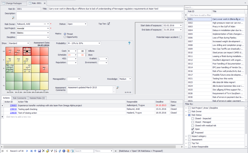 Pims Risk is a risk management software that effectively addresses project uncertainties by utilizing real-time analytics and operational risk management features, allowing organizations to proactively assess and mitigate risks. By facilitating corrective actions and detailed audits, it empowers teams to make informed decisions throughout the project lifecycle. This enhances overall project success and minimizes disruptions for businesses seeking to optimize risk management strategies.