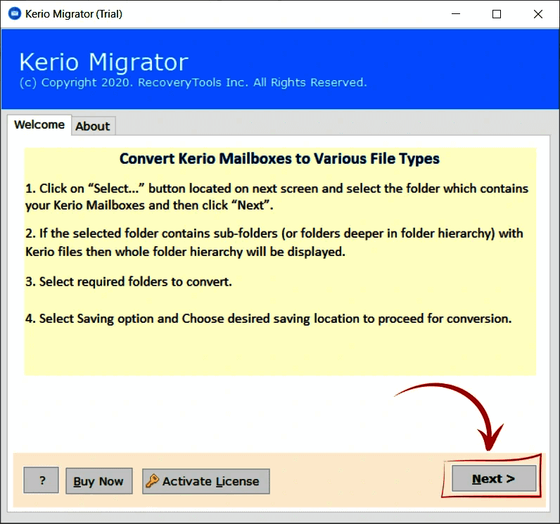 RecoveryTools Kerio Migrator is a specialized tool designed for efficiently migrating Kerio mailboxes while preserving all associated metadata. It supports batch exports to over 25 different file formats and allows for the conversion of Kerio contacts into CSV or VCF files. This capability streamlines the migration process, ensuring that users can seamlessly transition their data without loss, making it ideal for businesses looking to upgrade their email management systems.