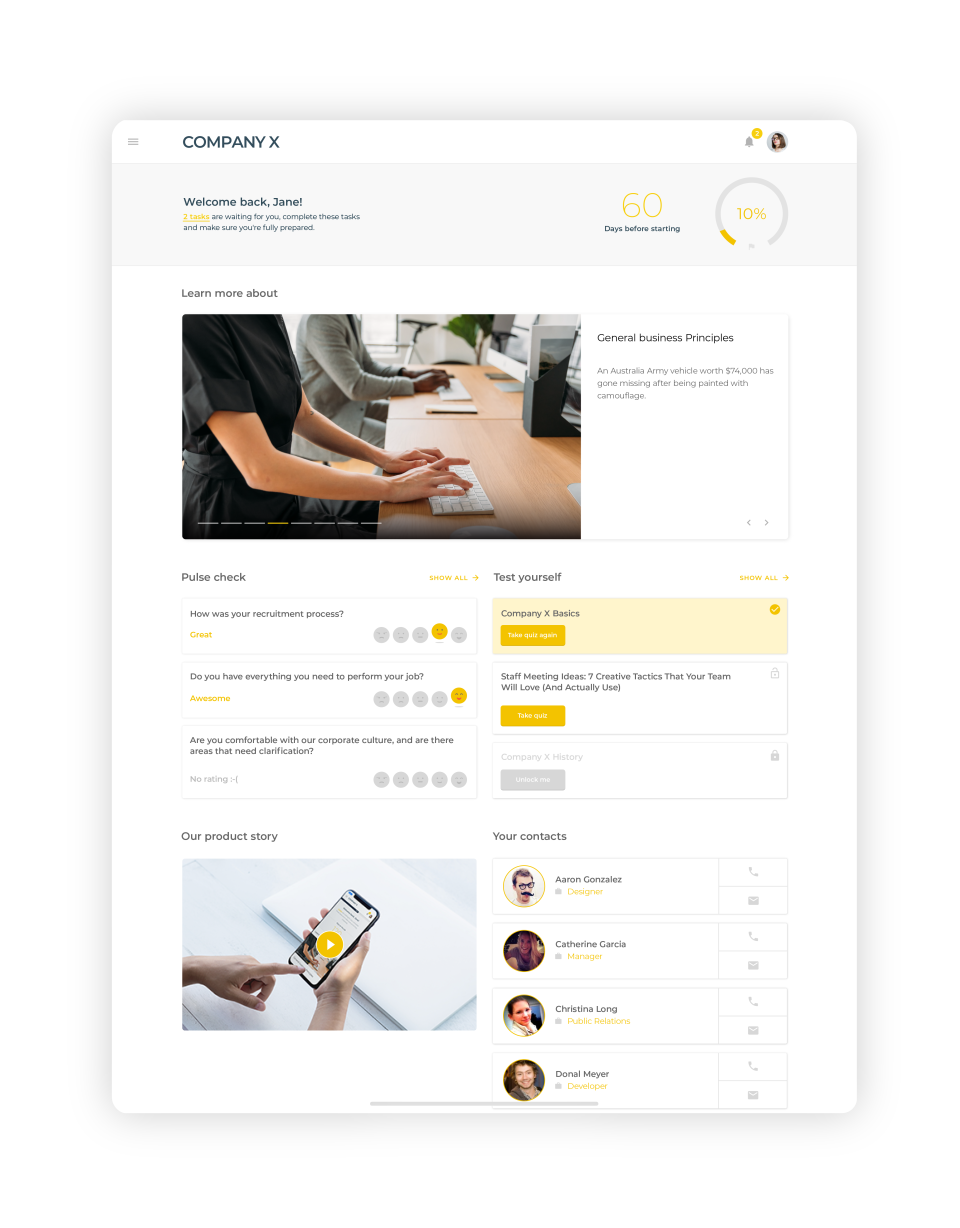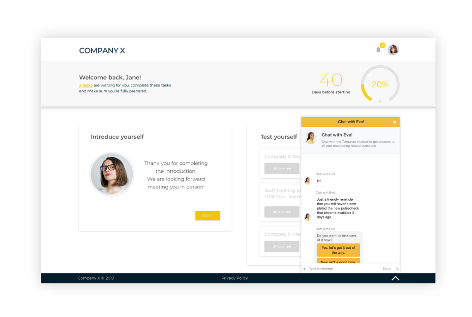 Onboarding software that simplifies the new hire integration process using Document Management and Task Management, enabling HR teams to save time and enhance employee engagement. By personalizing the onboarding experience with an Employee Handbook and self-service options, Talmundo ensures new employees feel welcomed and informed, ultimately improving retention rates and productivity. Tailored for organizations seeking efficient onboarding solutions, it streamlines administrative workflows and fosters a positive workplace culture.